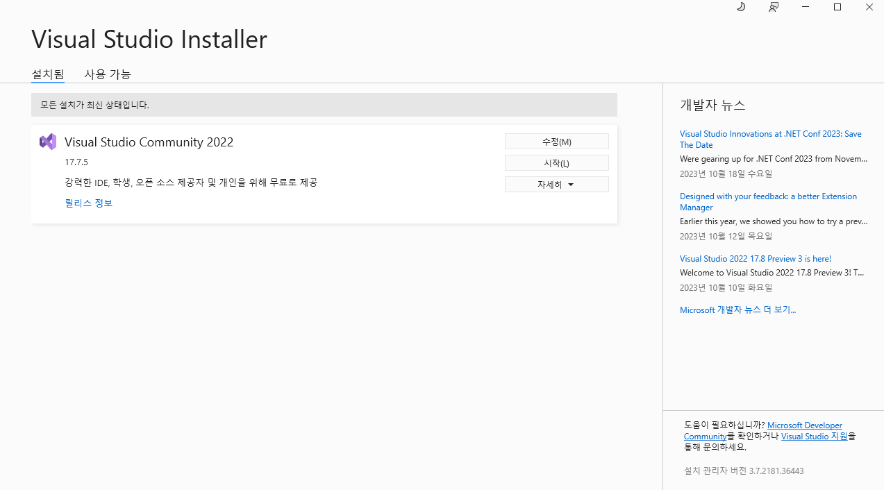 Step1 비쥬얼스튜디오 설치확인