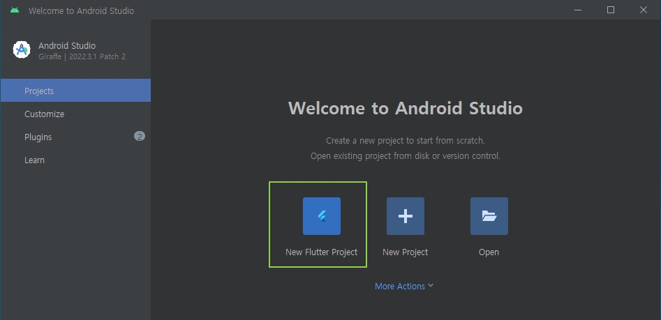 안드로이드 스튜디오를 처음 실행하면 Welcome페이지가 뜹니다.
