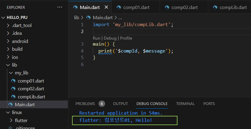Main.dart에서 compLib라이브러리 import