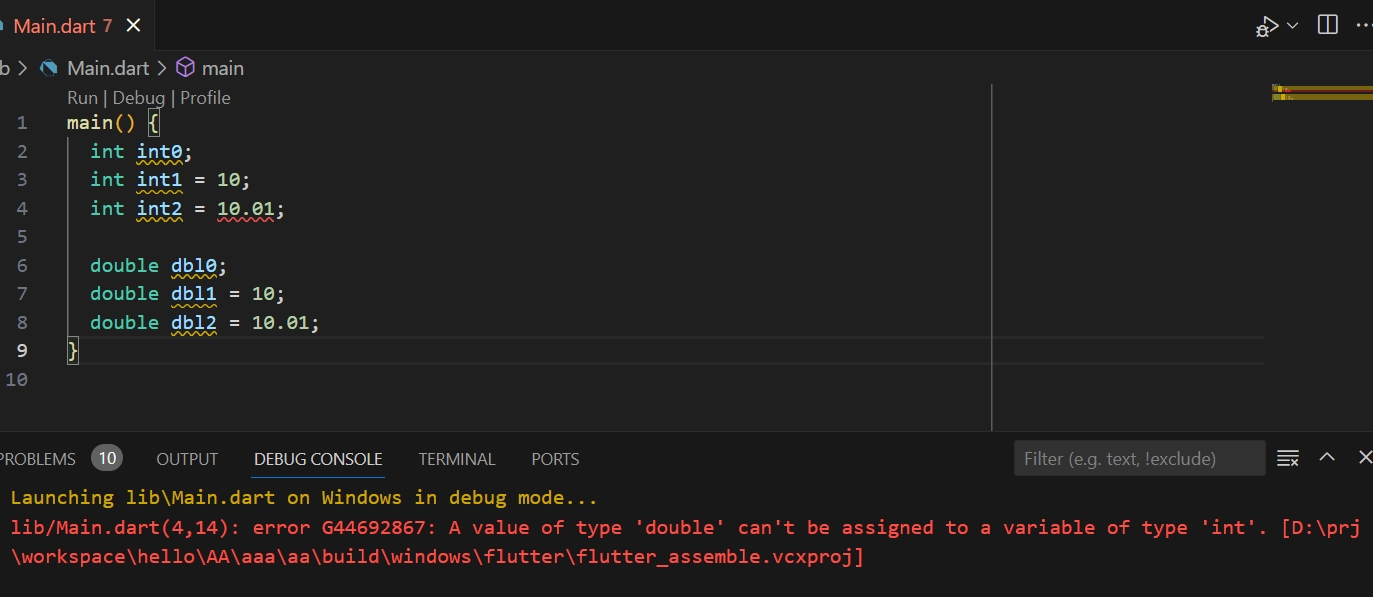 1. int and double 타입 선언