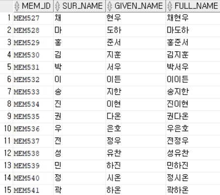 , SUR_NAME || GIVEN_NAME AS FULL_NAME