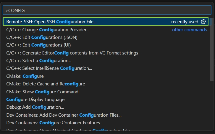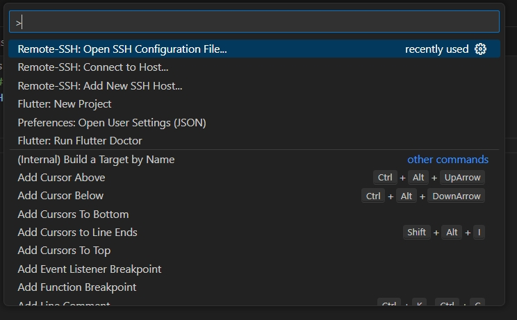 여기서 Open SSH Configuration File...부분을 찾아서 클릭합니다.