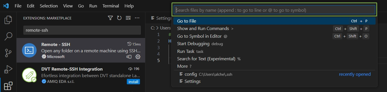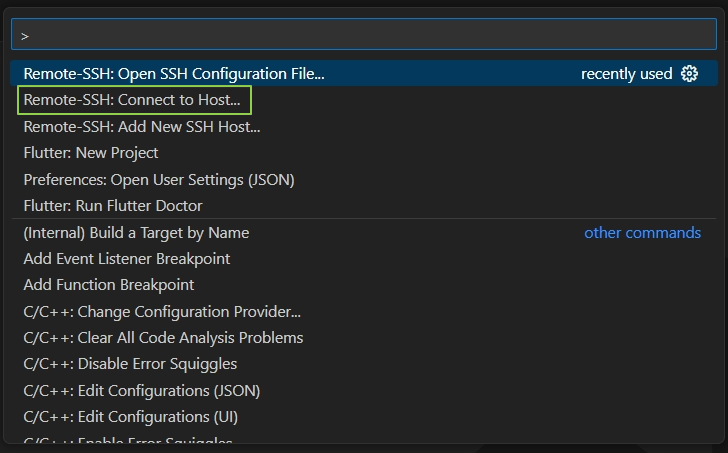 검색창에 커서를 위치하고 F1키 입력후 Connect to Host...를 선택합니다.