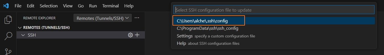 설정을 수정하고 싶다면 다시 Open SSH Configuration File...를 선택하고 수정하실수 있습니다.