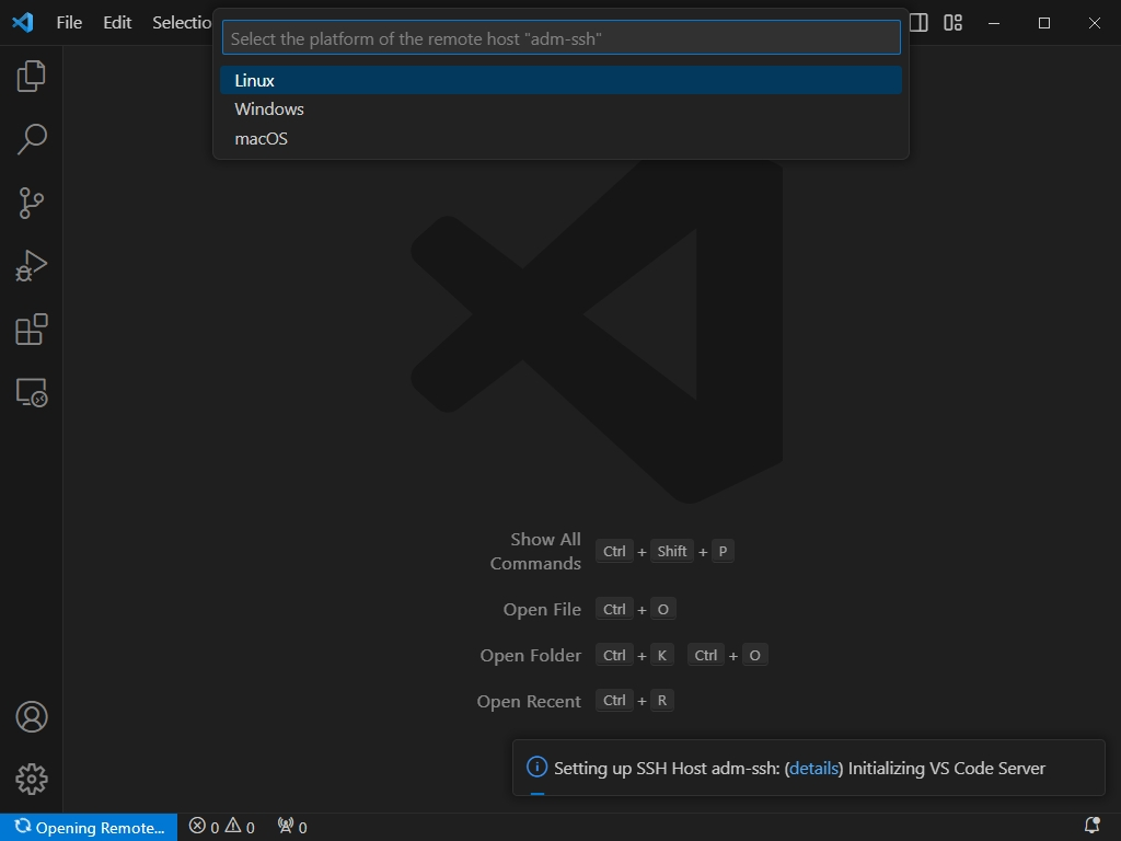 4. 새창으로 vscode가 실행됩니다. Linux를 선택 합니다.
