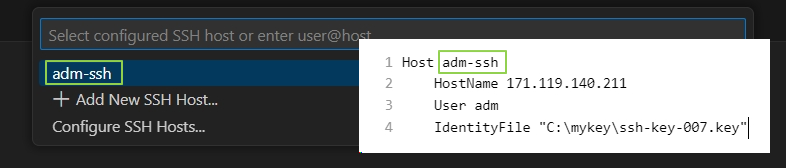 IdentityFile "C:\mykey\ssh-key-007.key"